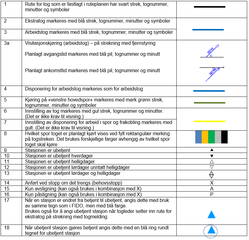 Daglige rutegrafer og strekningsinformasjon