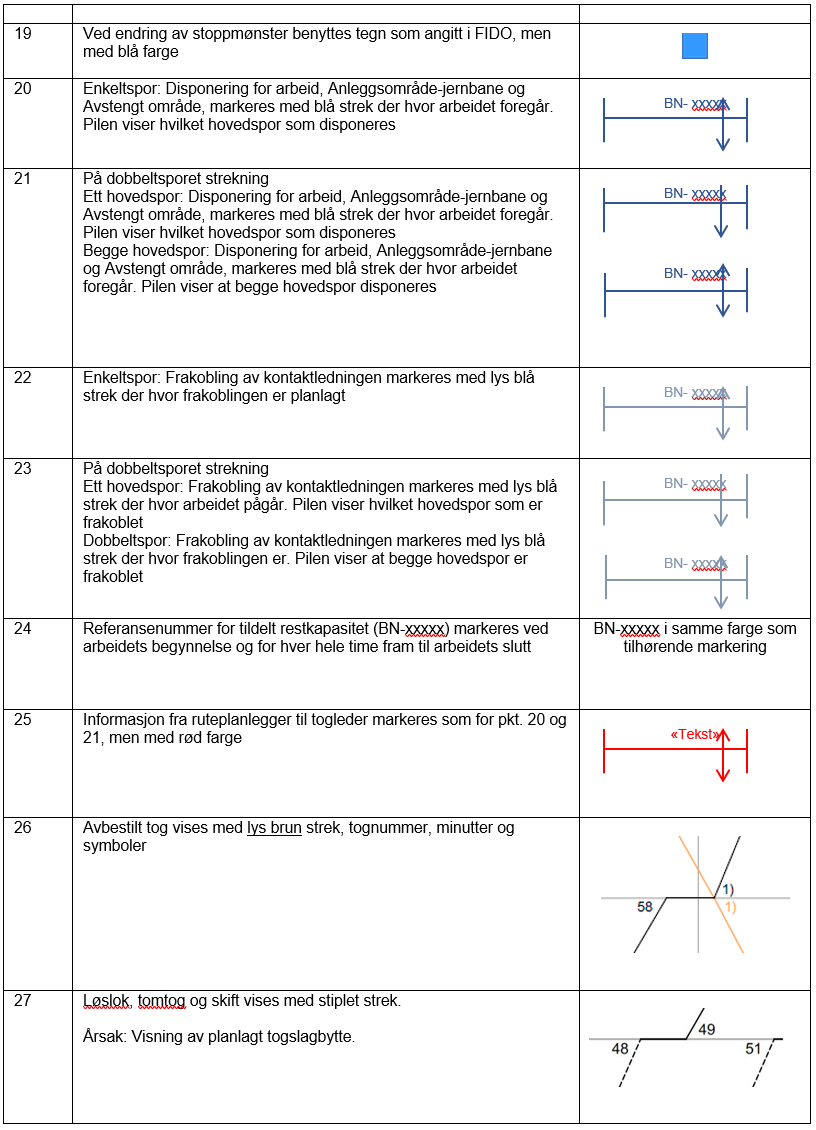 Rutegrafer med den fastsatte togtrafikken for rutetermin R26